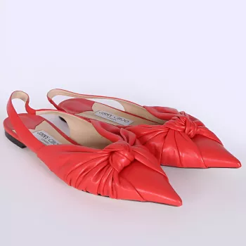 Jimmy Choo Red Chilli Annabell Leather Pointed Toe Flat Shoes